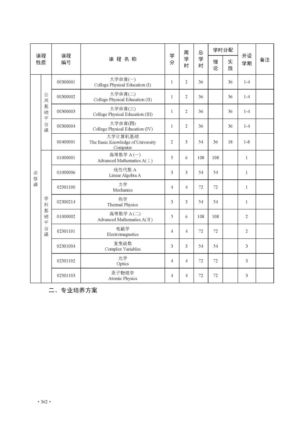 2022版培养方案--物理学专业