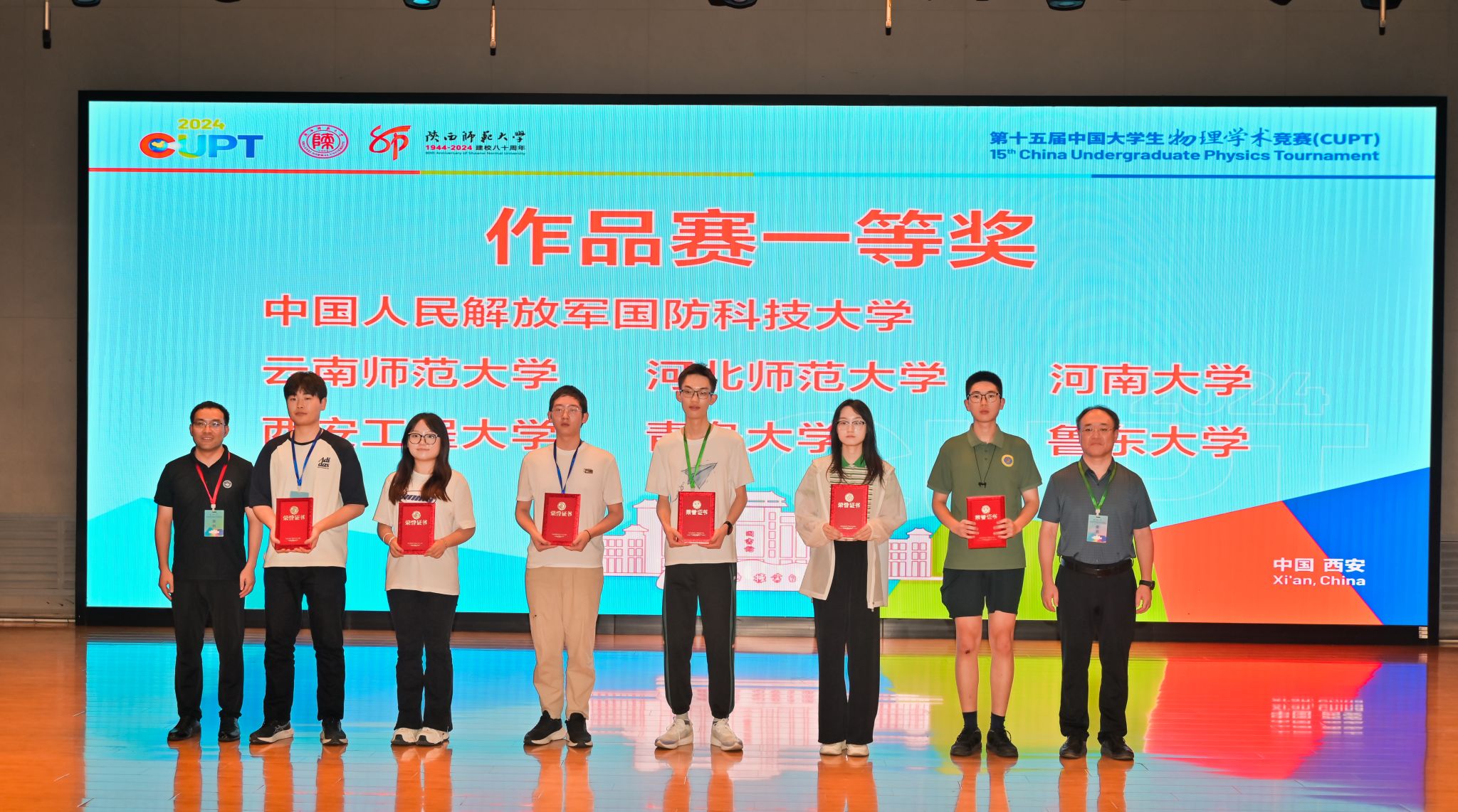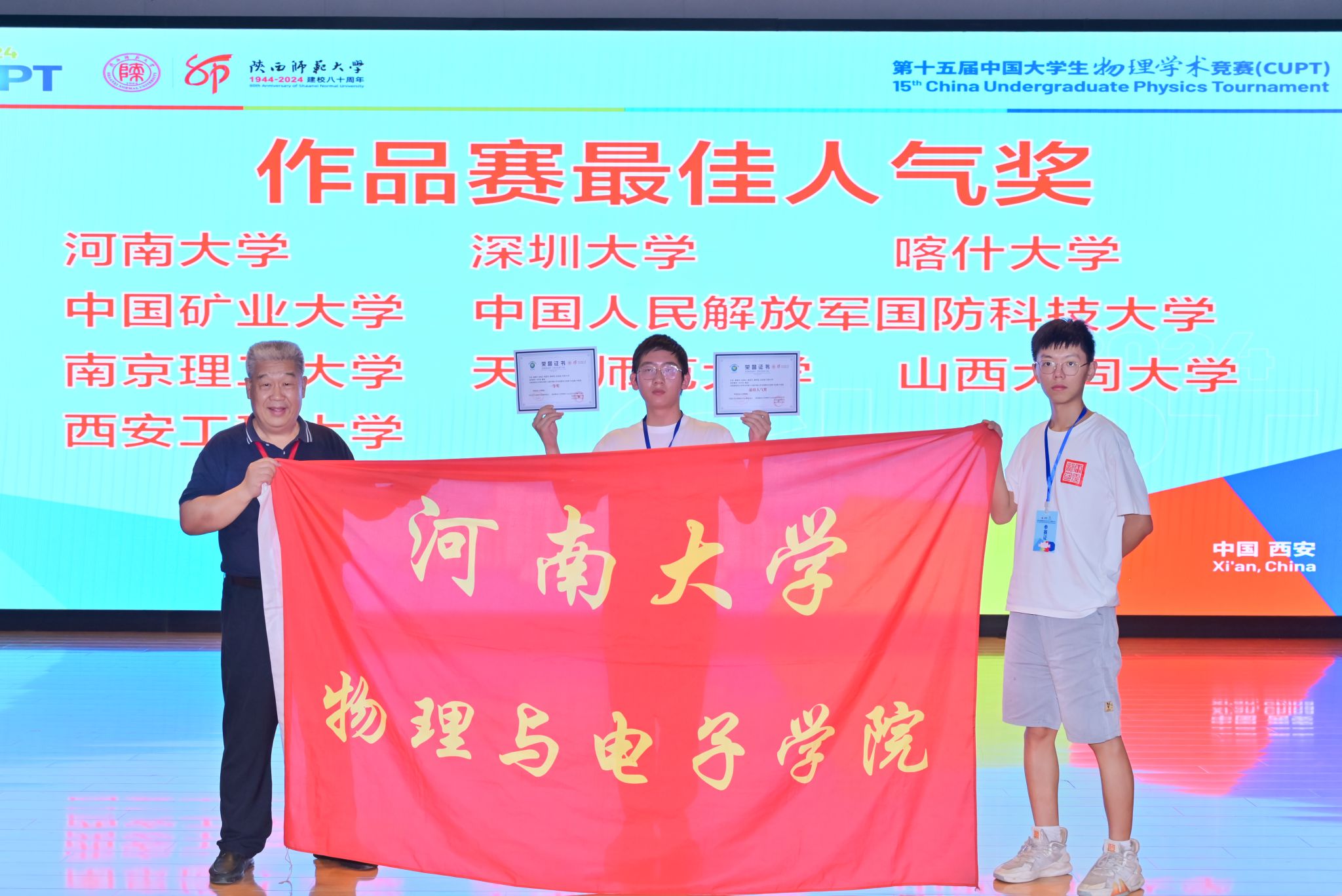 2024年中国大学生物理学术竞赛采用IYPT2024题目,由10名专家组成的作品赛裁判组,以现场讲解和答辩方式评出一二三等奖,其中一等奖7名;最佳人气奖是由参加团体赛的68支队伍对作品赛海报进行投票选出。能同时获得一等奖和最佳人气奖,充分展示了h漫画 学子扎实的物理基础、创新的研究能力,以及积极进取、团结协作的精神风貌。