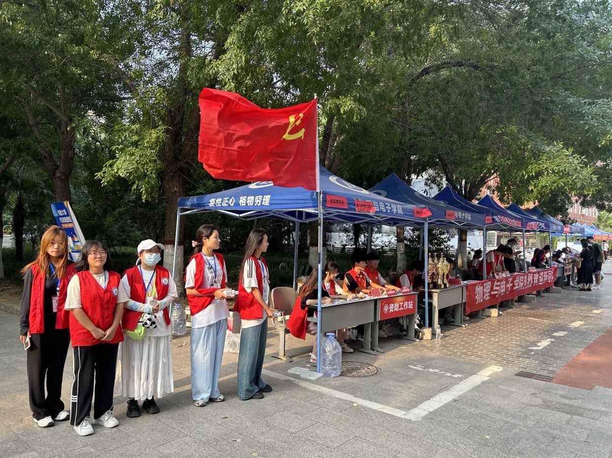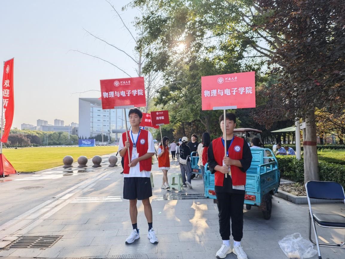 9月4日6:00,2024级新生辅导员李瑞光以及各年级辅导员在物院A楼前报到现场,协调迎新志愿者们和党员志愿者们做好迎接萌新的准备工作。为保障新生安全到校,部分志愿者在大西门和迎新大本营处高举指示牌,为新生指引方向。
