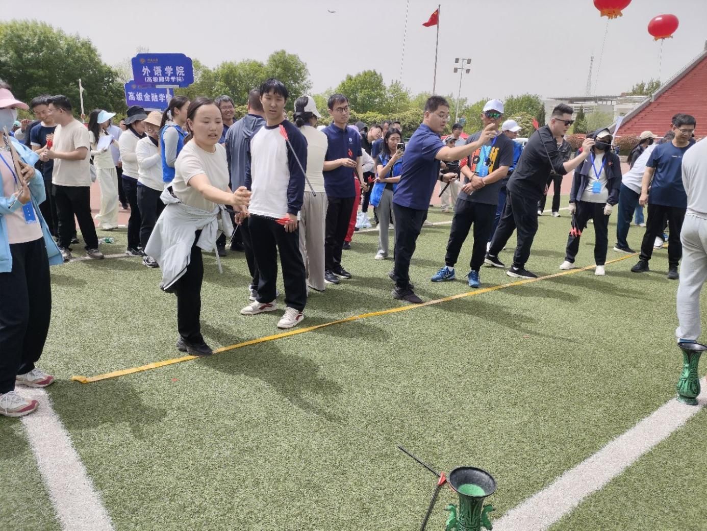 教师配合默契,齐心协力。讲台上,他们是教书育人的教师;赛场上,他们化身为拼搏奋进的运动员。矫健的身姿、坚毅的眼神,无不彰显着挑战自我、永不言弃的精神。最终教师组获得投壶第一名、飞盘九宫格第一名、四人五足第五名、旱地龙舟第六名、双人背夹球迎面接力第七名的好成绩、师生驿传接力第五名的好成绩。这份老师们的执着信念通过赛场传递给在场学生,激励着师生们将拼搏精神融入学习与生活,向着更高目标不断奋进。