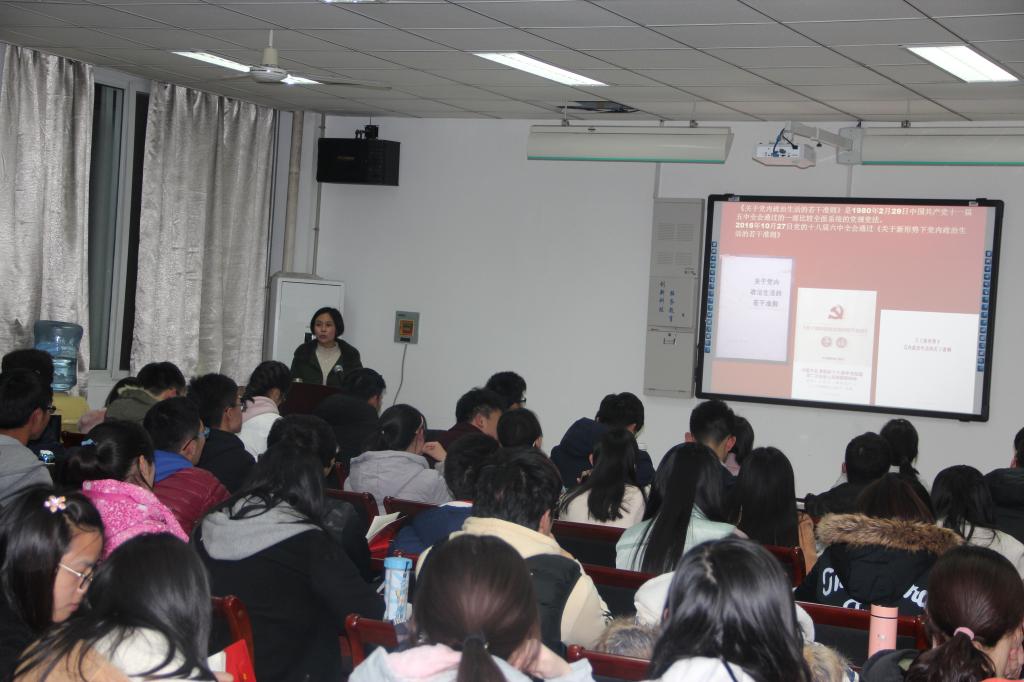 党课培训班纪律要求》并对相关事宜进行安排。院党委书记王宏华以《从党的性质、指导思想谈端正入党动机》为题主进行第一讲。此后,纪检监察员张秋梅讲授《党章解读—共产党员的条件》、马克思学院教授马树功讲述《坚持中国特色社会主义信念,为实现共产主义而奋斗》、学院党委副书记乔石豪讲述《延安精神及其时代价值》、校党委组织部组织科科长张烁主讲《正确履行入党程序》、院党办主任刘寒冰主讲《党的基础理论知识》。党课中间还以观看红色电影、召开座谈会等形式,以各年级为单位进行研讨活动。