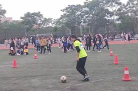 带球绕杆,同学们苦练球技