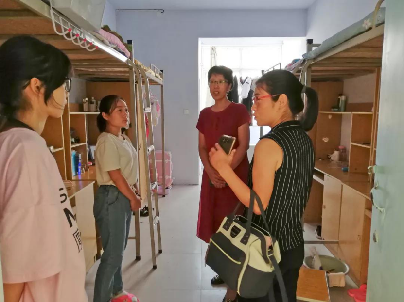 部分领导和老师分别前往北苑29号楼、东苑26号楼走访刚刚入学的2019级新生,详细了解新生的住宿条件和对新环境的适应程度,并就走访过程中发现的问题及时与宿舍管理员进行了沟通,同时提出了有效的整改建议。