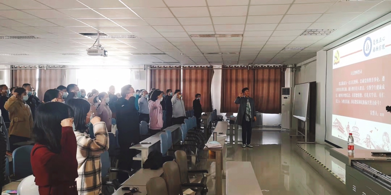 最后,党委书记王宏华领誓,全体教师重温人民教师誓词。
