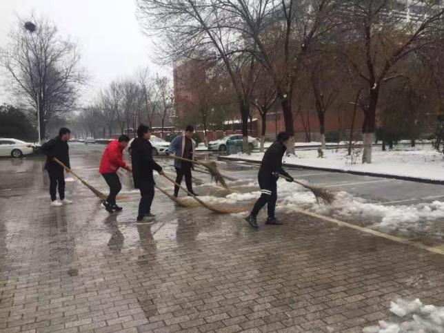 组织研究生开展了一次清扫积雪志愿服务活动,大家在老师的带领下,对学院周边的通行通道积雪进行了清扫。