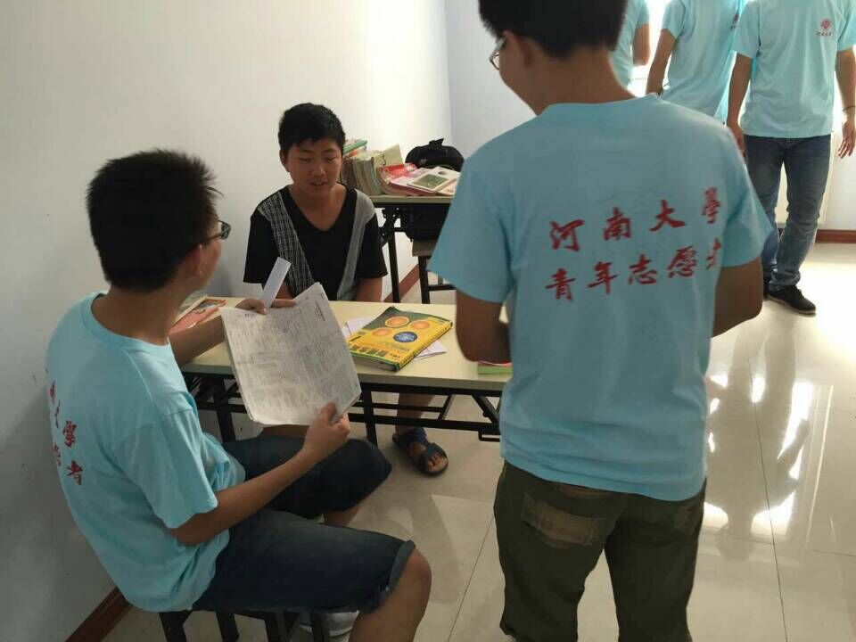 支教团,并向支教团简单地介绍了这里孩子们的学习情况。稍做调整后,支教团队员便亲切与同学们交流了起来,同时还别开生面的进行了素质拓展、心理辅导的互动。在进行了单词接龙的游戏之后,气氛也活跃了起来,孩子们与支教团成员也更加熟识了。在接下来的一周内,支教团将与孩子们一起相处、共同学习,力所能及的为孩子们的暑期生活增添收获与欢乐。
