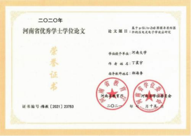 为鼓励产出高质量学位论文,促进高层次人才培养而实施的重要举措,2020年河南省首次增设本科层次省级优秀学位论文评选。日前,2020年河南省优秀学位论文(毕业设计)评选结果由省教育厅、省学位委员会批准公布并下发证书。h漫画 共有35篇学士学位论文入选,h漫画 2020届物理学明德班丁震宇的学位论文《基于p-Si/n-ZnO薄膜异质结器件的压电光电子学效应研究》、测控技术与仪器专业李晨阳的学位论文《基于树莓派的无人车道路自动识别系统设计》获河南省优秀学士学位论文,指导教师郑海务、吕浩杰获河南省优秀学士学位论文指导教师。