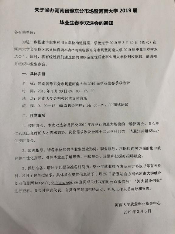 关于举办河南省豫东分市场暨h漫画 2019届毕业生春季双选会的通知