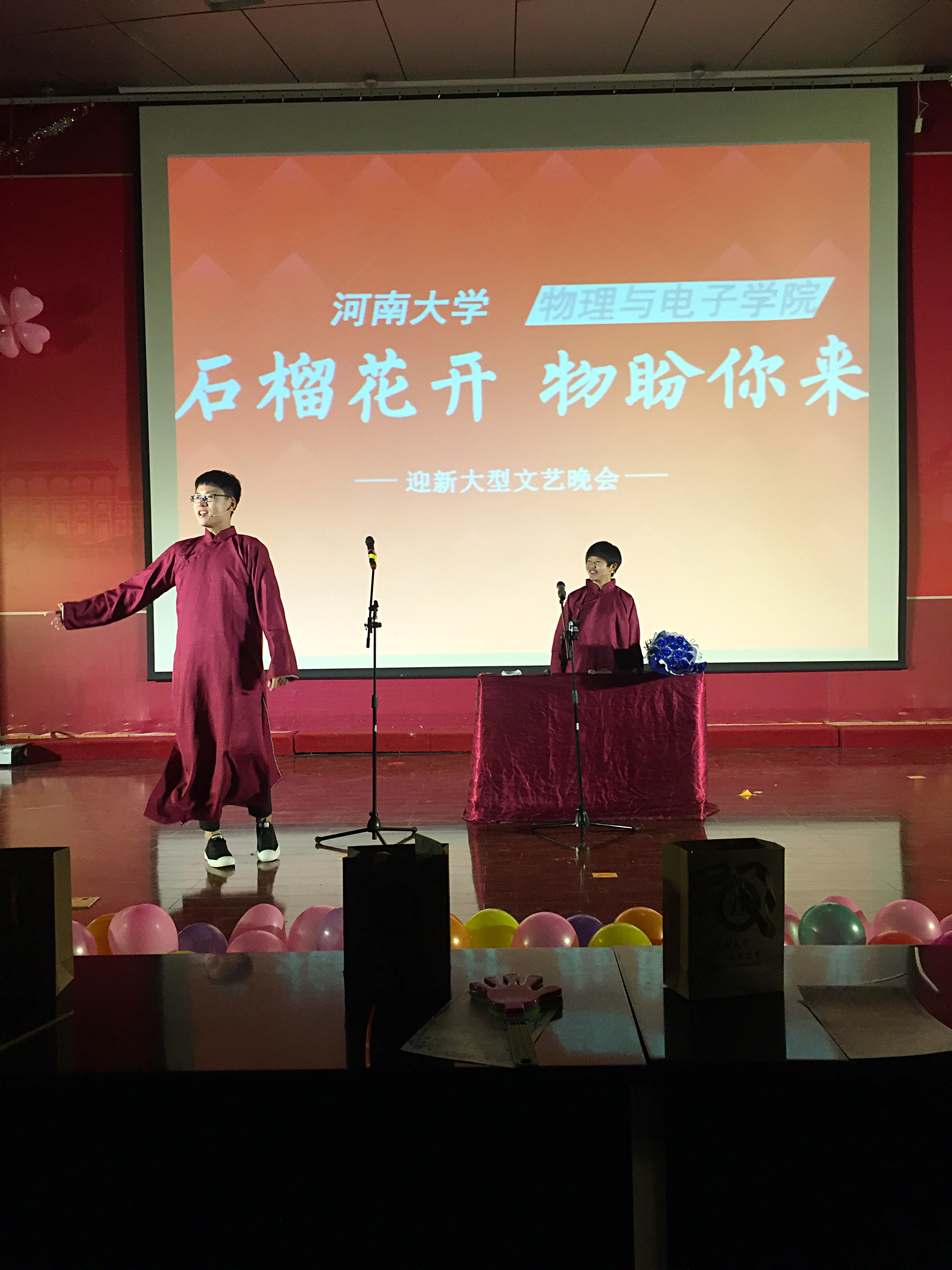 10月29日晚,h漫画 2016级“石榴花开,物盼你来”迎新文艺晚会在我校金明校区隆重举行,院党委书记王宏华、院长顾玉宗、院党委副书记乔石豪、副院长夏晓智、赵高峰、党办主任刘寒冰、行政办主任郭浩、各系室教师、各年级辅导员以及2016级400余名新生一同观看了迎新晚会。