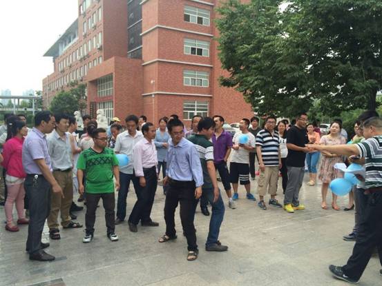 A楼前广场举行。院党委书记王宏华,党委副书记翟俊涛,副院长邱永宽、夏晓智、赵高峰携全院教职工参加了本次工会活动。