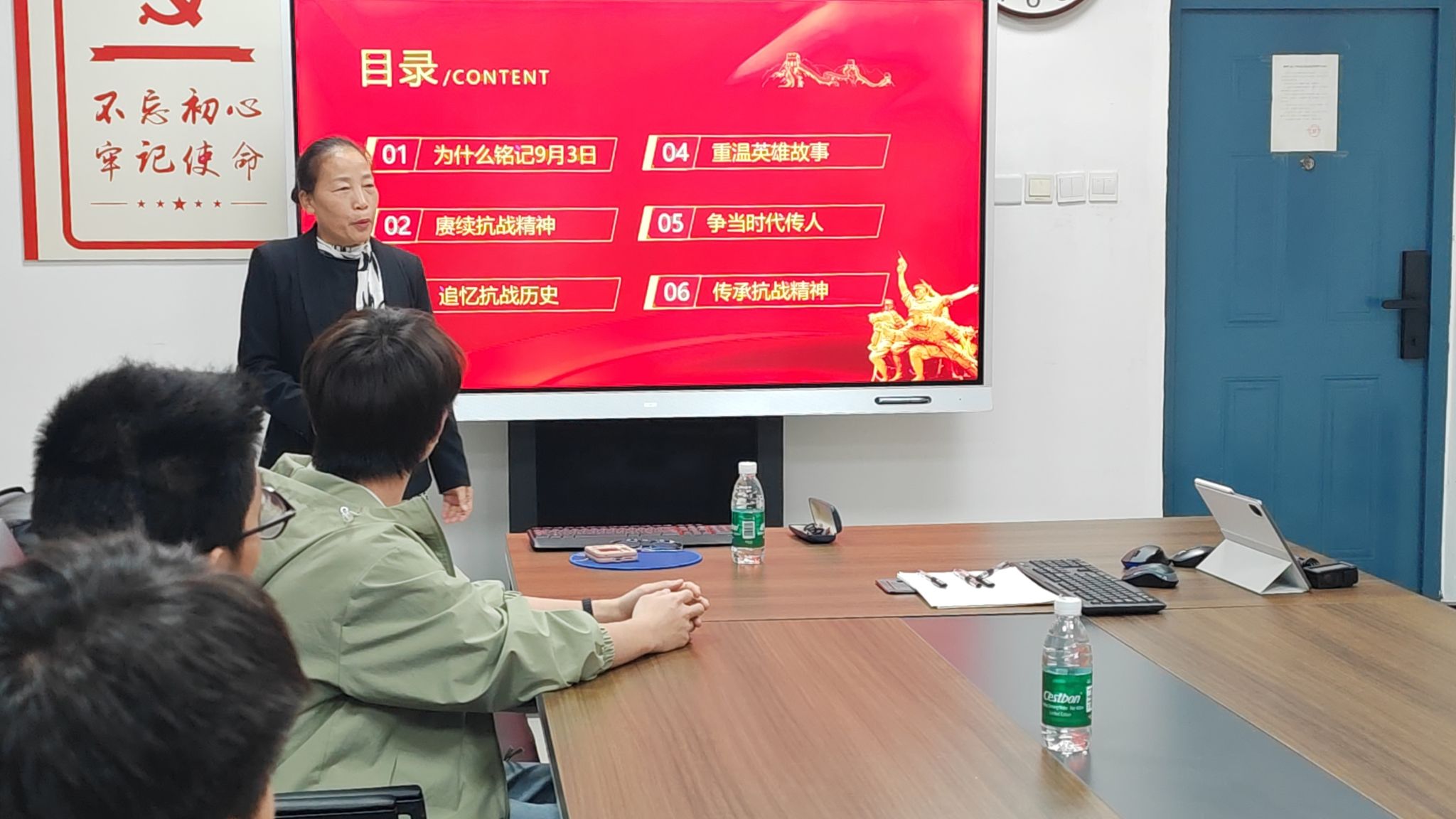 张婷带领全体党员重温历史。她生动讲述了九一八事变的经过、中国人民抗日战争的艰辛历程以及无数先烈为国家独立和民族解放做出的卓越贡献。她表示,每一段历史都值得铭记,每一位先烈都值得缅怀。作为新时代青年党员,大家要从历史中汲取力量,传承先烈精神。