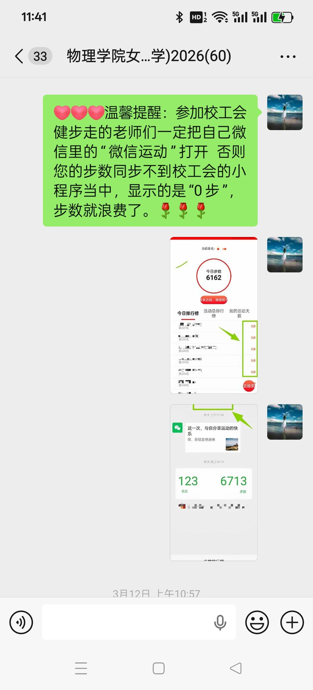 为响应校工会“不负春光 悦走越精彩”女教职工健步走活动号召,引导女教工养成健康的生活方式,学院工会负责老师在线全程指导全院女教工参与此次健步走活动。全院女教工积极响应、踊跃参与。健步走活动,不仅丰富了女教工的文体生活,更引导大家树立了“健康第一”的生活理念,呈现活力满满的精神风貌。