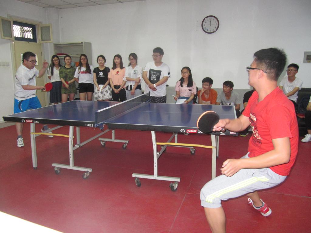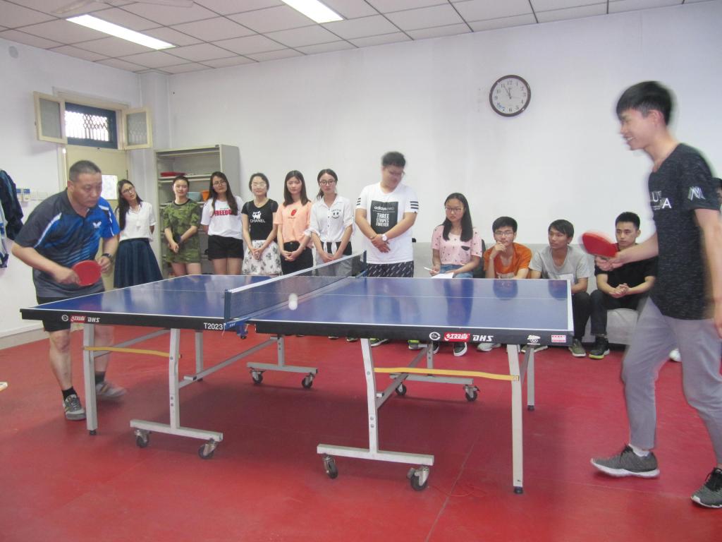 为进一步丰富师生生活、增进师生友谊,搭建教工和学生乒乓球爱好者之间交流的平台。5月18日下午,学院工会在物理楼A座三楼工会活动室举行了师生乒乓球友谊赛。由副院长邱永宽、副书记乔石豪及教工王孟禄、成强、郭丽、张大蔚组成的教工代表队,与来自各年级乒乓球爱好者组成的学生代表队展开了激烈对决。