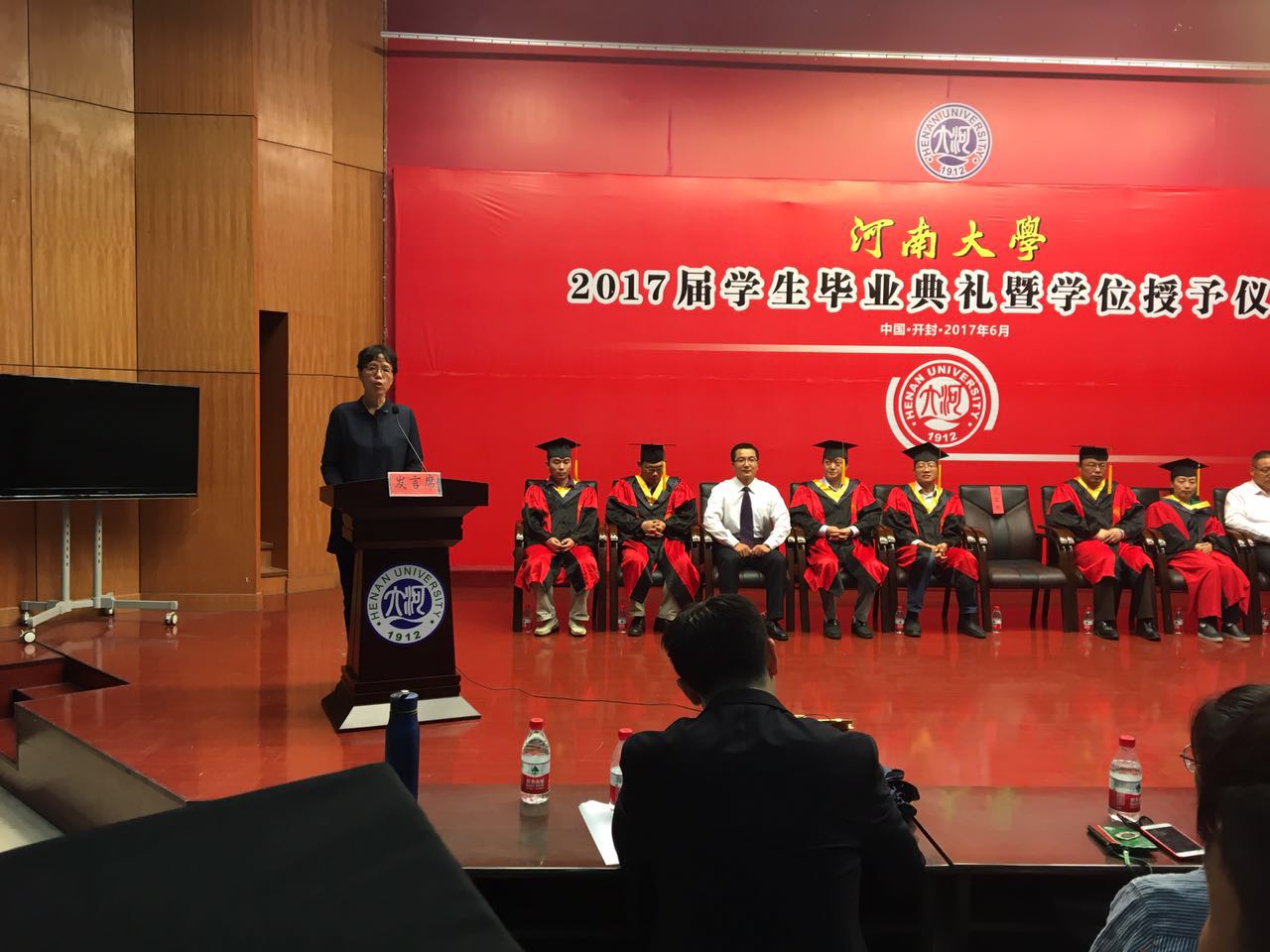 院党委书记王宏华代表学院向各位毕业生表示最热烈的祝贺!向辛勤培育同学们健康成长的老师们致以最崇高的敬意!她还对即将离开学校的毕业生们提出以下几点希望:一是希望同学们心胸开阔,志存高远。二是希望同学们勤奋学习、求实创新。三是希望同学们正视挫折、勇于挑战。她要求大家要始终铭记“明德新民,止于至善”的校训,不要忘记“复性正心,格物穷理”的院训,在有字之书中继续学习,在无字之书中躬身实践。