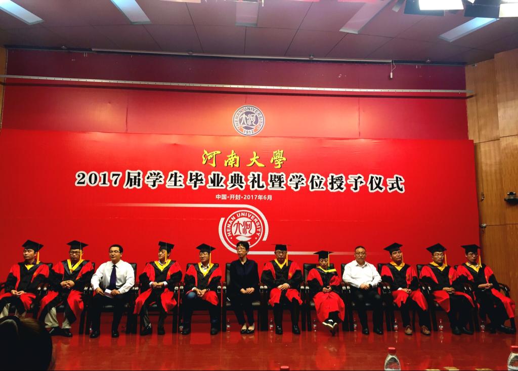 2017届《本科毕业生学士学位授予决定》,并向大家表示了最热烈的祝贺和衷心的祝福。院长顾玉宗为获得学士学位的毕业生一一援正流苏,颁发学位证书并合影留念。