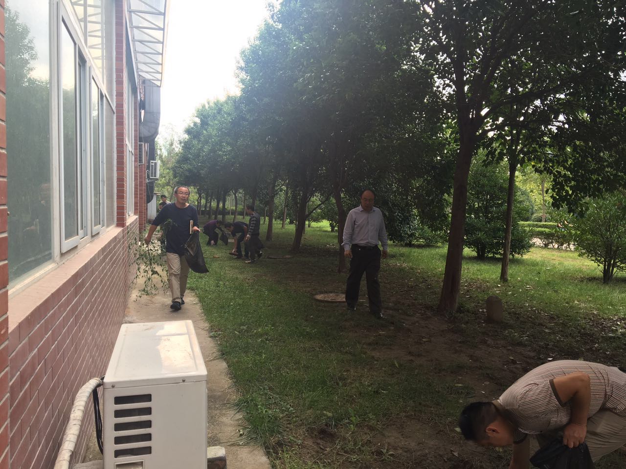 会后,全体教职工拿着清洁工具,拉网式清理了学院的卫生区,为欢迎新生入校营造了干净、卫生的良好环境。