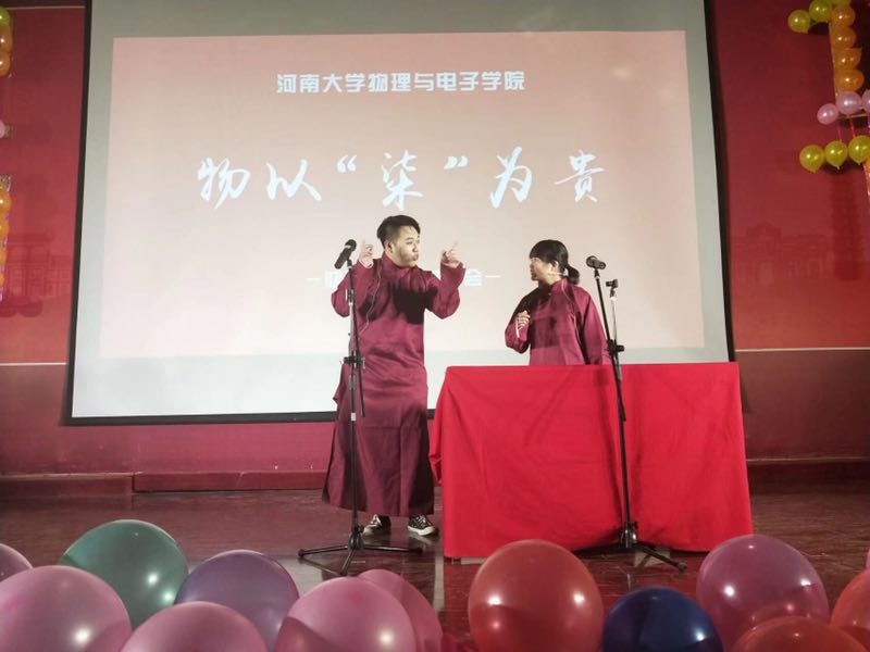 流光溢彩迎新夜,心心相印齐飞扬。晚会伴随着激情四射的开场舞拉开了序幕,本次晚会节目形式多种多样,舞蹈、歌曲、小品、相声等各色表演一应俱全,精彩绝伦。小品《老同学》因演员们夸张又贴近实际的表演逗的全场同学捧腹大笑;大一学生张嘉乐、马宇昊一段精彩的b-box表演点燃全场,赢得全场雷鸣般的掌声;乐器伴随着舞蹈,一曲乐器合奏《凉凉》让观众赏心悦目,惊艳全场;院学生会成员马颉昊和靳梦缘带来的搞怪相声《众口难调》凭借其幽默诙谐的语言搏得了观众们的阵阵欢呼,将现场气氛推向高潮。晚会期间还穿插了微信抽奖和游戏互动环节,给同学们带来了意想不到的惊喜。最后,伴随着一首大合唱《难忘今宵》,晚会落下帷幕。