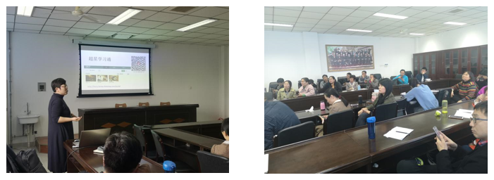 朱老师选取《近代物理实验》课程,讲述了网络学习平台超星“学习通”各个模块的操作方法和她使用“学习通”的体验。她让在场老师下载学习通app,使用课程码进入课堂,通过投屏功能向老师们演示了如何在PC端建立自己的课程,包括课程封面设计、课程资料添加和试题库建立等。接着朱老师介绍了学习通在和学生互动方面的功能,如在线签到、随机选人、现场抢答、发送点评、现场投票和参与讨论等。最后朱老师还简要介绍了其他的网络教学学习平台,老师们可根据课程特点选择平台建课。