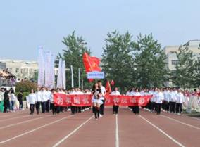 代表队身着统一服装,面带微笑,昂首阔步,展现出蓬勃向上的精神风貌。