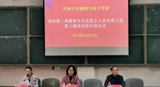 2019年团校第二期暨青年马克思主义者培训工程第三期培训开班仪式于综合楼1201教室顺利举行。校团委副书记李平、学院党委副书记刘寒冰及青马工程培训班全体学员参加了开班仪式。学院团委副书记姚星宇主持开班仪式。