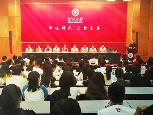 2019级新生代表,物理学专业李嘉钰同学作怀着对百年名校的憧憬表达了自己对校训的理解“为达成理想必须勉力以赴,达成之后则务使其不坠”;怀着对科学的热爱为自己定下目标:不仅要刻苦研习,也要兼收并蓄,更要开拓创新,培养自己各方面能力,争取做到“今天我以河大为荣,明天河大以我为荣”。