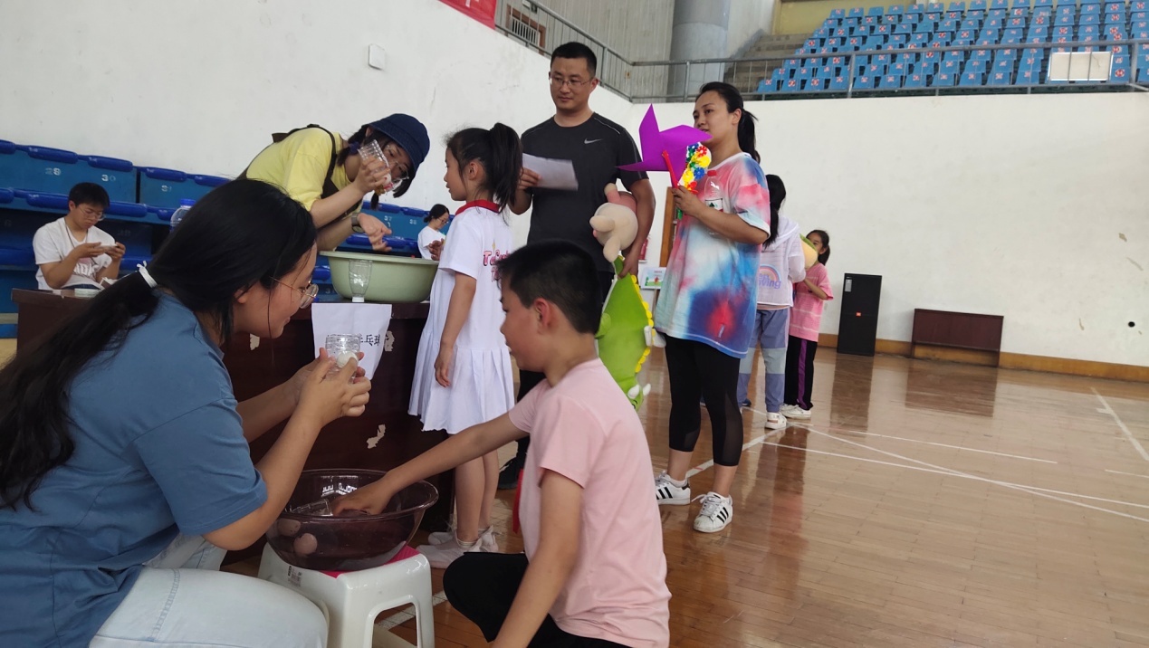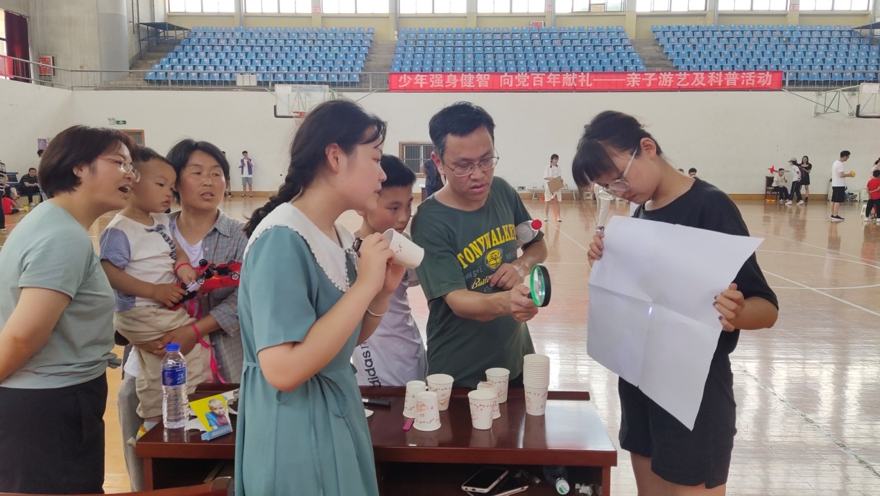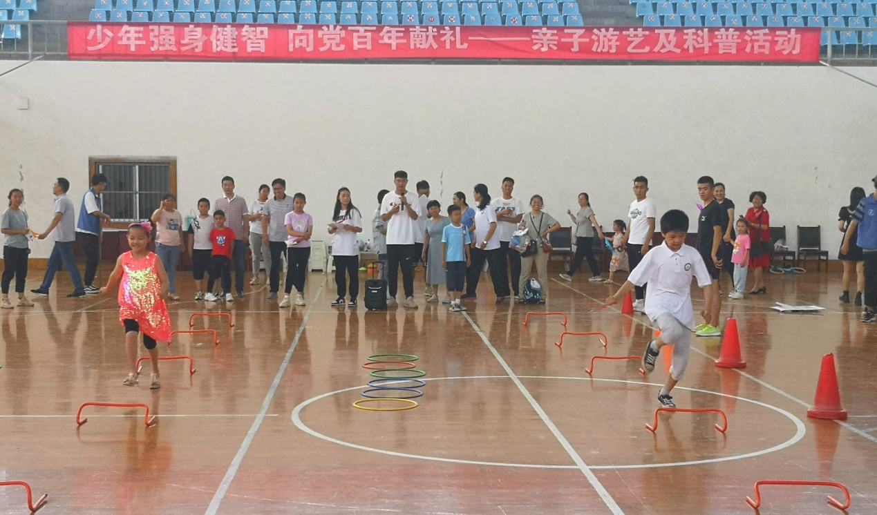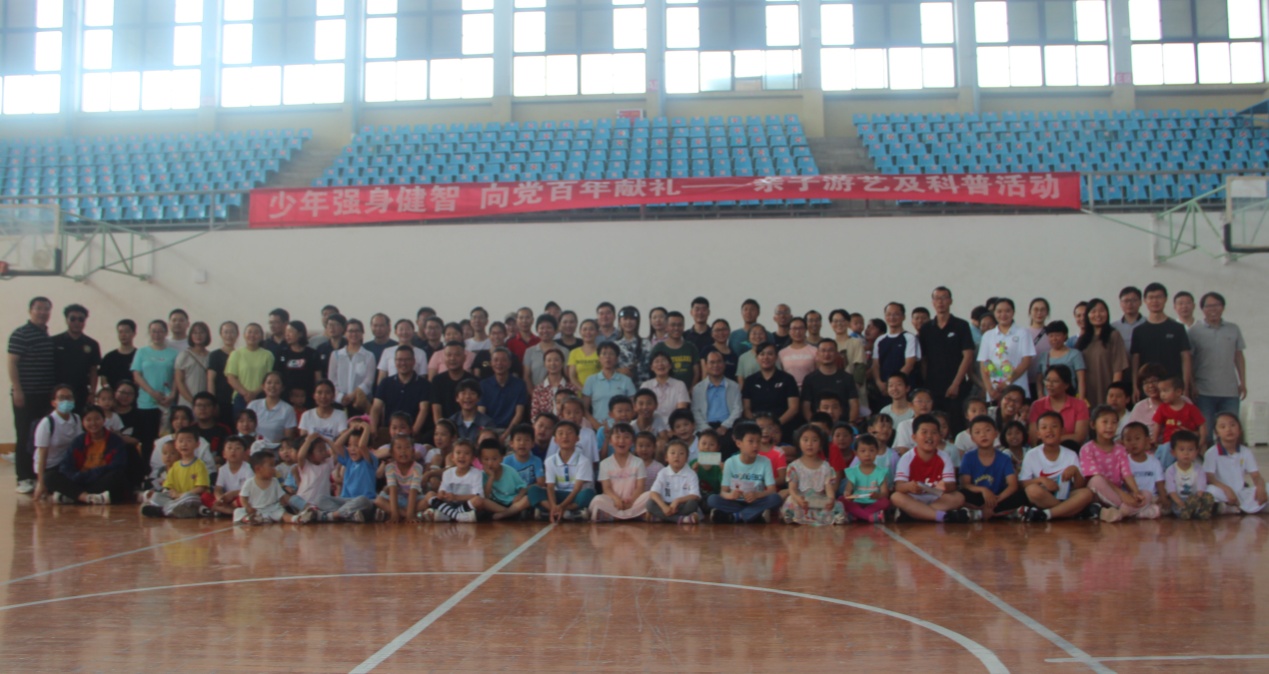 体育学院篮球馆,物理电子学院、体育学院联合举办以“少年强身健智 向党百年献礼”为主题,“身体活动”与“大脑启智”相结合的亲子游艺活动。两个学院相关领导、教职工及其子女100余人参加亲子活动。