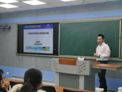 高比能量、高安全的电化学储能技术是清洁能源发展的重要方向,电极材料的稳定性和电池的安全性成为储能器件大规模应用的关键,电极材料表面结构及功能对电池的稳定性、安全性具有决定性影响。曹安民研究员聚焦正极材料表面副反应及结构退化问题,介绍了课题组近年来在电极材料的表面层结构精准调控方面的系列研究工作,探讨了电极材料的稳定机制及稳定途径,构筑了具有大规模应用前景的高比能体系表面层。本次报告深入浅出,极大地拓宽了与会师生的眼界。在精彩的报告结束后,参会的老师和同学们与曹老师积极互动,曹老师对相关问题做了认真的解答,与会师生获益匪浅,对电极材料表面层的可控构筑有了全面、深入的了解。