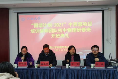 院长白莹、副院长魏高明、大学物理教研室主任杜明荣、继续教育办公室主任向兵等有关负责人和来自全省各个县区的近50名初中物理精英教师参加了开班典礼。典礼由魏高明主持。
