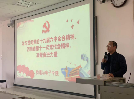 刘寒冰围绕党的十九届六中全会召开背景和丰富内涵,从党的百年奋斗重大成就和历史经验的重大意义、党的百年奋斗的初心使命和重大成就以及中国特色社会主义新时代的历史性成就和历史性变革进行宣讲解读,为全体研究生上了一堂深刻生动的党课。随后他结合自己学习生活经历,勉励同学们在河南省第十一次党代会精神鼓舞下,抓住新一轮“双一流”建设机遇,不断提升自身科研能力,发挥主观能动性,成长为肩负时代责任,高扬理想风帆的佼佼者。