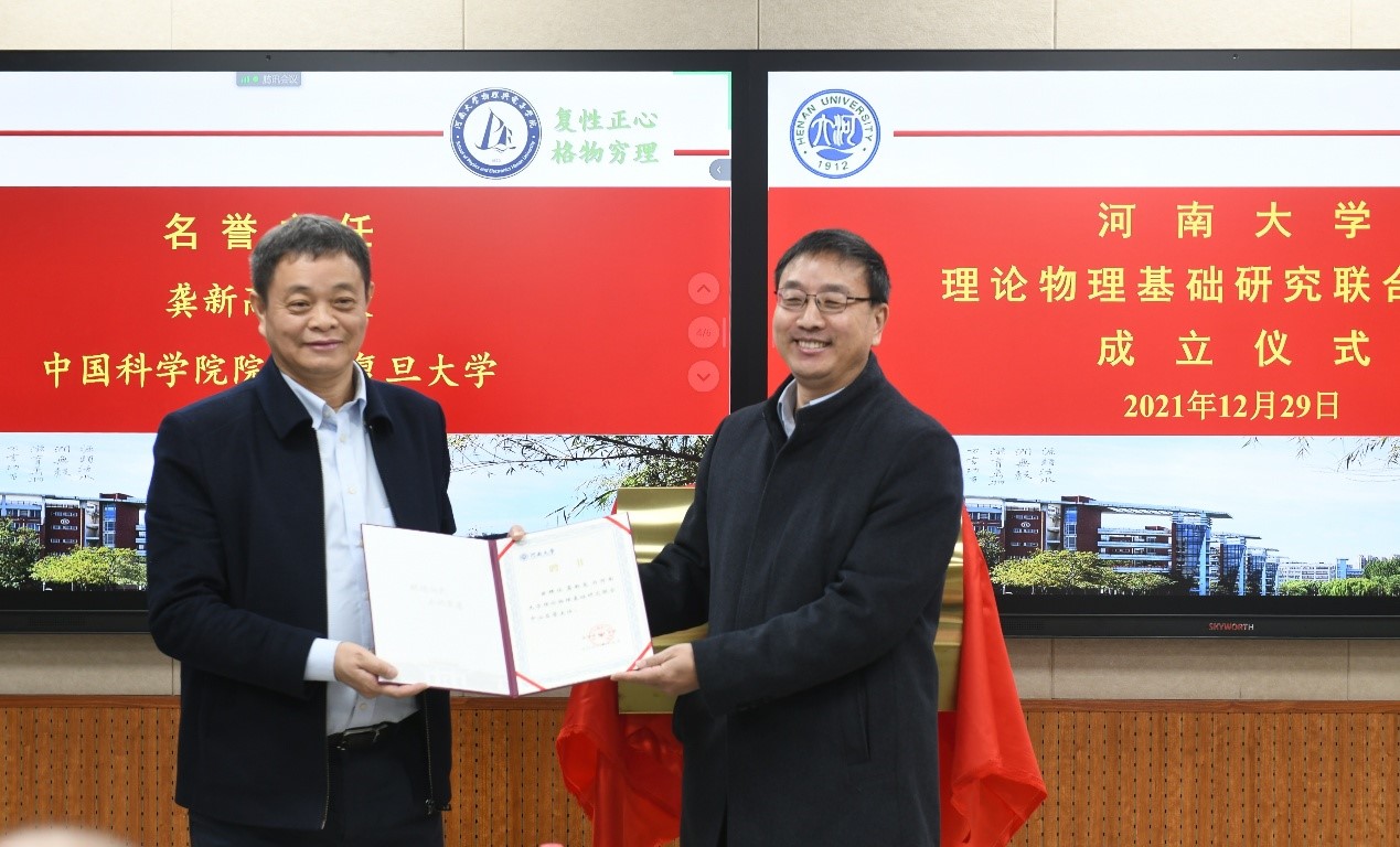 王学路在致辞中,对联合中心成立表示热烈祝贺,对远道而来的专家们表示诚挚欢迎。他希望,逐步把联合中心建设成为一个汇聚高层次人才、产出原始创新成果、培养拔尖创新人才的具有中原特色和国际影响力的理论物理研究基地。随后,王学路分别向龚新高院士和贾瑜教授颁发中心名誉主任和主任聘书。龚新高院士、贾瑜教授表示,将全力支持h漫画