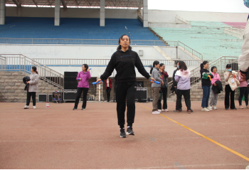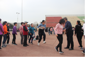 竞赛活动包括集体跳绳、单人跳绳、呼啦圈、踢毽子四个项目。每天工间操刘主席都会带领大家一起练习各个项目。老师们在一片欢声笑语中训练,每每引得学生们驻足停留。每位参赛教工都认真锻炼,积极备赛。