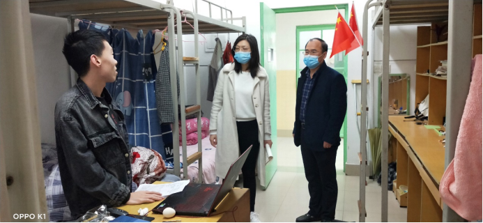 刘寒冰每进入一间宿舍,都会深入细致地检查用电安全及卫生情况,并与学生亲切的交谈,详细了解学生们的思想动态及生活状况,认真听取了学生们对宿舍和生活服务设施的意见,并对学生宿舍环境卫生、宿舍文化建设、宿舍学风建设进行了现场指导。他嘱咐同学们一定要严格遵守学校宿舍管理相关规定,不使用违规电器,尤其是在夏天来临之际要更加注意用电安全,保证人走电断。同时,他建议学生一定要提高宿舍公共卫生和个人卫生水平,要多锻炼、勤洗手、常通风,扎实做好卫生防疫工作。