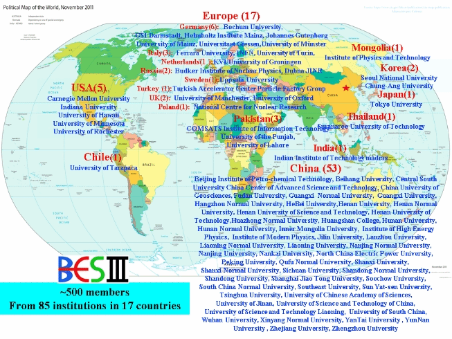 加入BESIII合作组的申请。至此,BESIII国际合作组共有来自17个国家的85个成员单位,成员超过500人,包括中国科学院高能物理研究所、清华大学、北京大学、中国科学技术大学等。