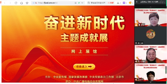 近日,“奋进新时代”主题成就展网上展馆发布上线,12月22日下午,大学物理教工党支部通过视频会议的形式组织开展了参观“奋进新时代”主题成就展网上展览主题党日活动。
