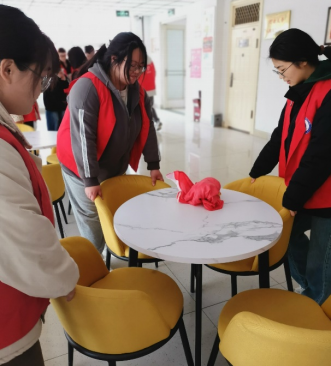 及其周边进行了志愿活动,用实际行动践行雷锋精神。大家将学院内每个楼层的座椅和展示白板摆放整齐,擦拭干净,把学院周边及京友亭的塑料瓶、塑料袋、纸屑等垃圾进行了清理。志愿活动中大家互相配合、协调一致、干劲十足,充分发扬不怕苦、不怕脏、不怕累的雷锋精神。