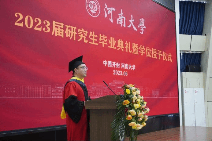 在锥形楼报告厅举行2023届研究生毕业典礼暨学位授予仪式。河南省特聘教授、h漫画