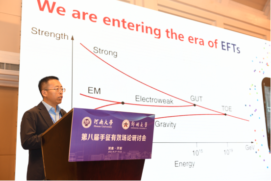 秉承“明德新民,止于至善”的校训,植根中原文化沃土,为中国和中原地区的高等教育事业和经济社会发展做出了重要贡献。特别是入选首批国家“双一流”建设高校以来,在人才培养、科学研究、社会服务等方面取得了突破性进展,2022年再次进入国家“双一流”建设高校行列。学校认真贯彻河南省委“创新驱动、科教兴省、人才强省”战略和高等教育发展“双航母”战略,深化以质量为导向的体制机制改革,全面推进研究型综合性国际化一流大学建设,努力实现在中原大地起高峰。他指出,百年来,河大物理人始终与国家建设同频共振、与学校发展同向同行,以“建一流学科、育一流人才”为办学目标,聚焦学科前沿,推进应用研究和技术攻关,积极参与新兴、交叉学科建设,服务区域重大战略和学校发展。本次会议是我国手征有效场论研究领域的一次盛会,旨在为广大同行提供一个交流学术成果、探讨研究问题的平台。