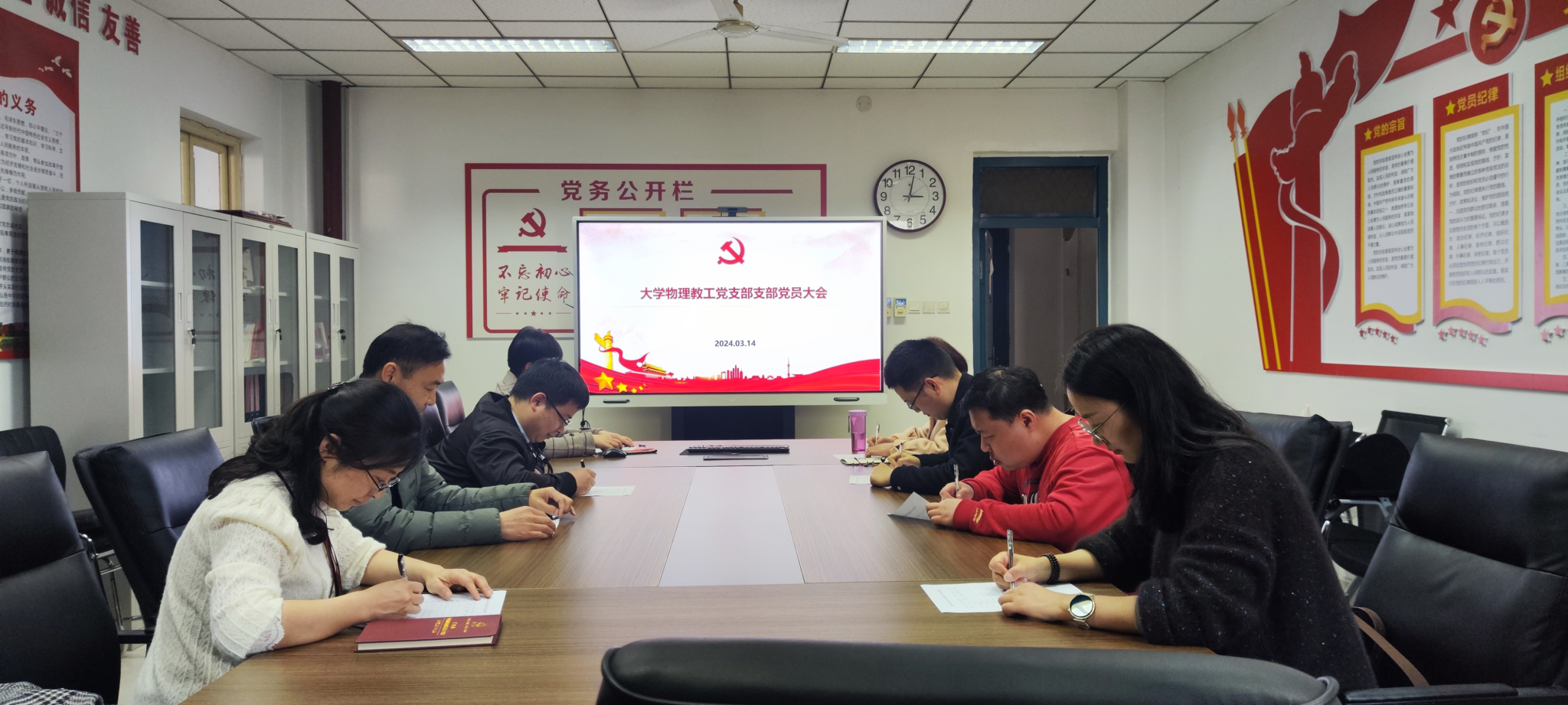 2024年3月14日,大学物理教工党支部在学院A楼309召开了第一季度支部党员大会,会议由支部书记康缈主持。本次支部大会主题为:支部党员大会暨民主评议会。