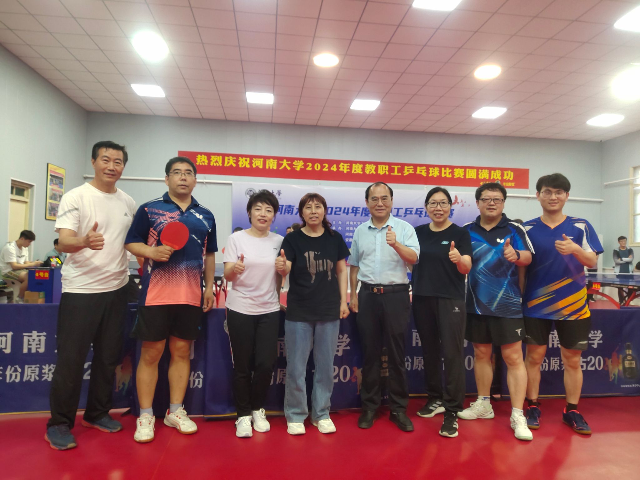 乒乓球队在学院党委书记张慧、副书记兼工会主席刘寒冰的带领下,各位选手团结协作、顽强拼搏,不畏强手、奋力冲杀,经过激烈角逐,取得佳绩!向兵、王孟禄分别获得男子单打第三名和第四名,男女混合团体获得冠军,这是继2021年获得冠军后再次卫冕冠军,刷新h漫画