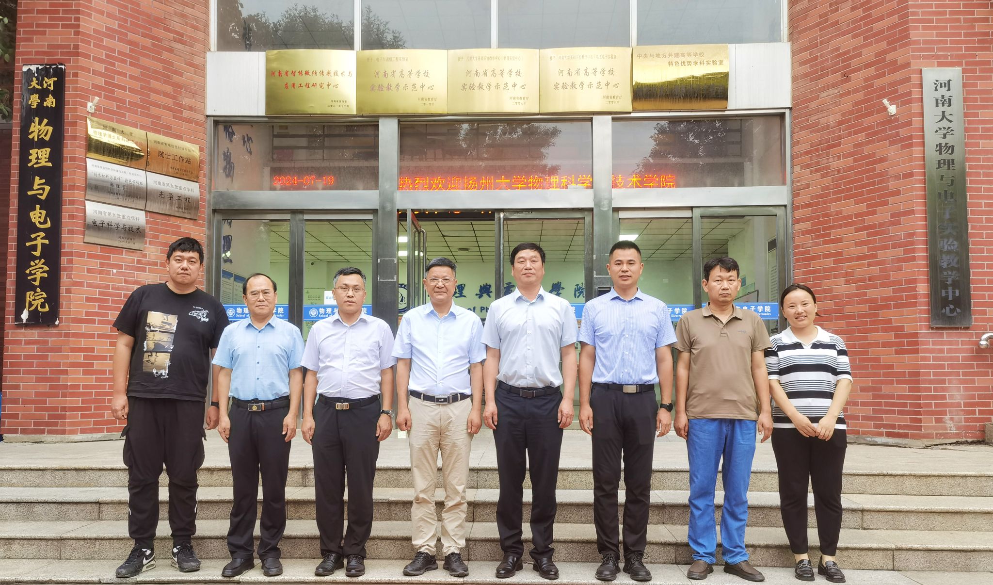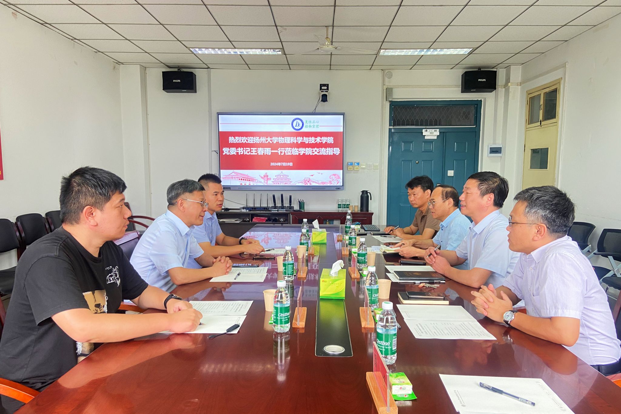 7月19日下午,扬州大学物理科学与技术学院党委书记王春雨、副书记毕瑜林一行3人来访h漫画 ,并在学院A311会议室召开座谈会。h漫画 党委书记张慧、执行院长李国强、党委副书记刘寒冰、副院长李新营、研究生辅导员周焕参加座谈。