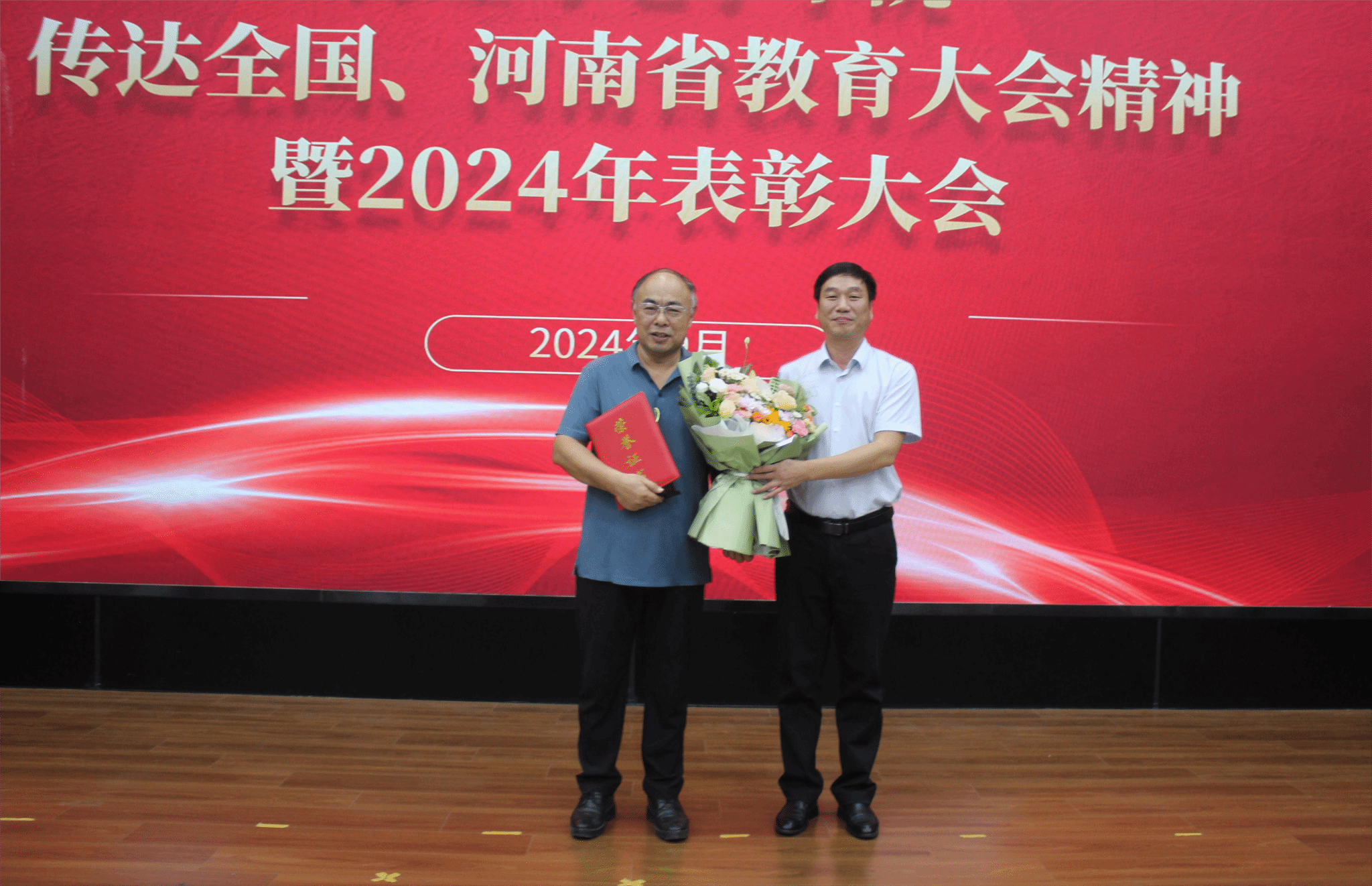 在锥形报告厅召开全体教职工大会传达学习贯彻全国、河南省教育大会精神暨2024年表彰大会。学院副院长魏高明主持大会。
