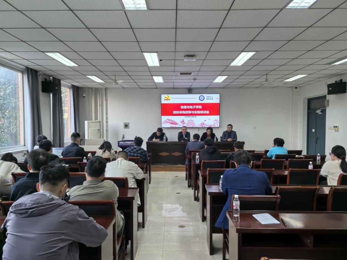 邀请学校招标工作办公室、国有资产管理办公室的领导和专家到学院举办了招标采购政策宣讲与业务培训会。学院领导班子、各科室负责人及教师代表参加了培训。