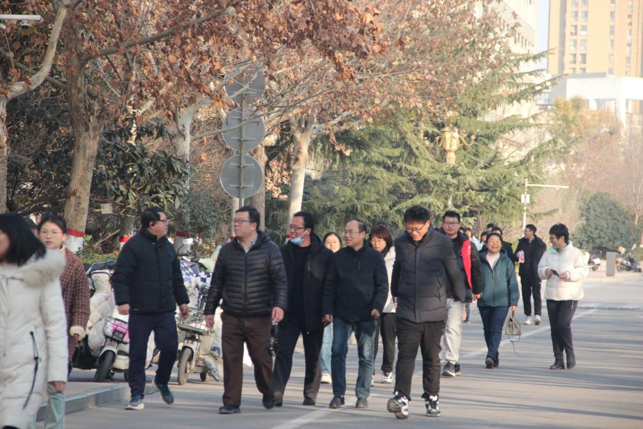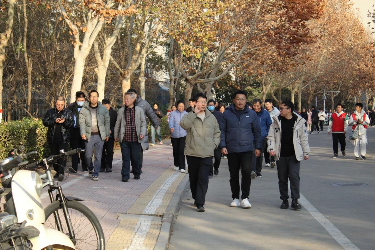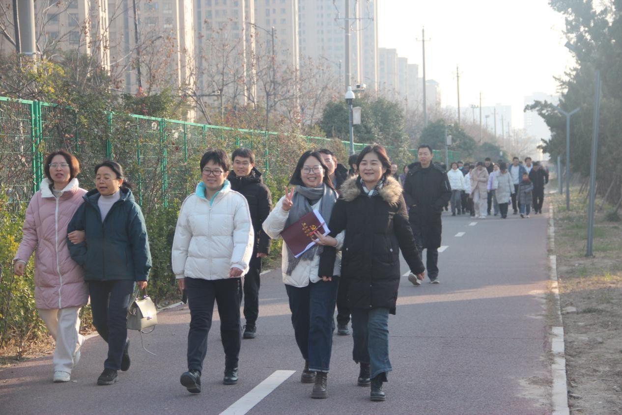 健步走活动从物院A楼开始,向东一直走到小东门,然后沿着金明校区的环形健康跑道绕学校一周。沐浴着冬日的阳光,欣赏着校园的美景,教师们个个意气风发、斗志昂扬,阔步向前,你追我赶、奋勇争先,在一片欢声笑语中前行,畅谈着工作和生活。他们用脚步丈量着校园的土地,以汗水诠释着对生活的热爱。体验着绿色环保出行带来的快乐,以健康美好的心情迎接2025新年的到来。