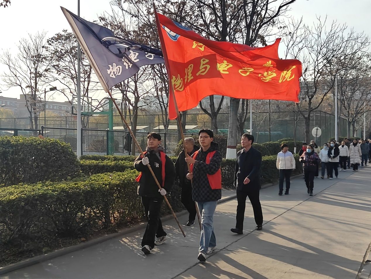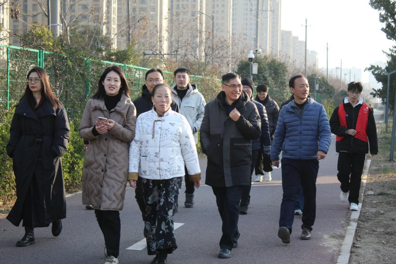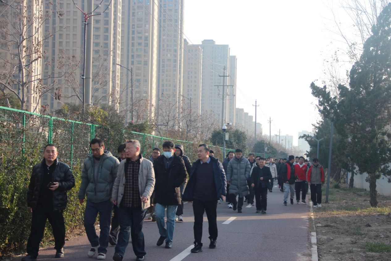 健步走活动从物院A楼开始,向东一直走到小东门,然后沿着金明校区的环形健康跑道绕学校一周。沐浴着冬日的阳光,欣赏着校园的美景,教师们个个意气风发、斗志昂扬,阔步向前,你追我赶、奋勇争先,在一片欢声笑语中前行,畅谈着工作和生活。他们用脚步丈量着校园的土地,以汗水诠释着对生活的热爱。体验着绿色环保出行带来的快乐,以健康美好的心情迎接2025新年的到来。