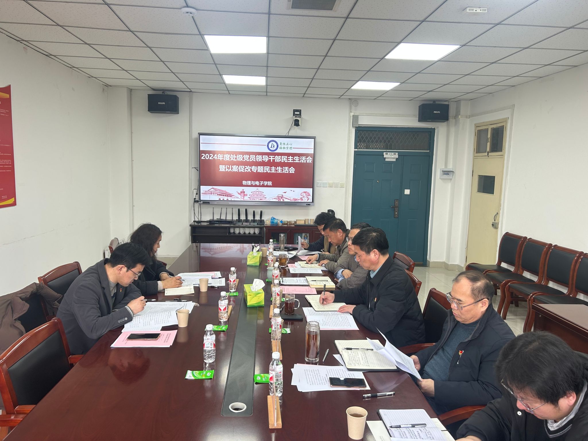 在学院A311会议室召开2024年度处级党员领导干部民主生活会暨以案促改专题民主生活会,学校第一督导组副组长、机关党委副书记史周宾,督导组成员、离退休处党政办公室主任晁卫华到会指导,学院全体处级领导班子成员参加会议。会议由学院党委书记张慧主持。
